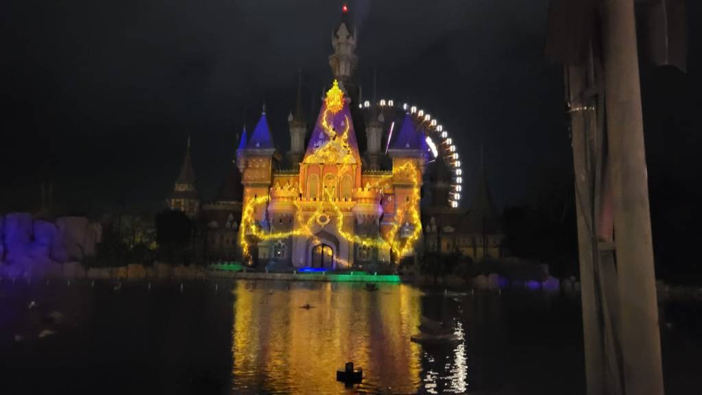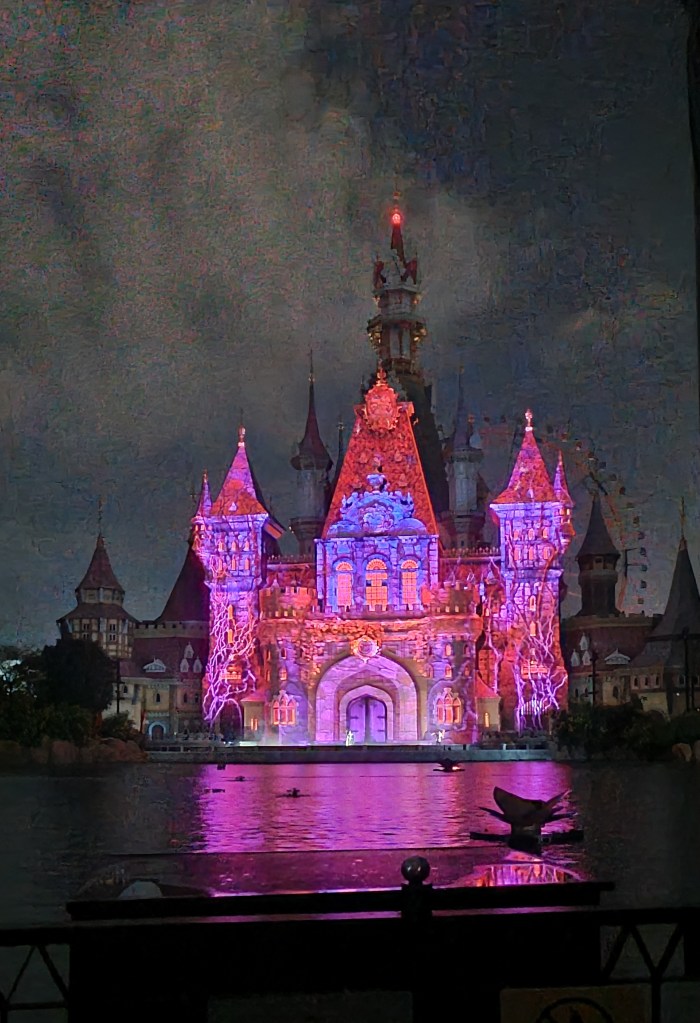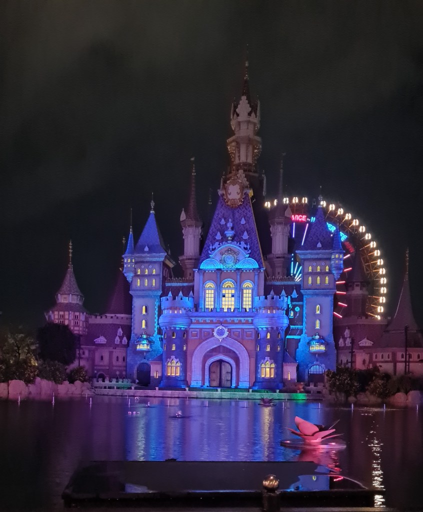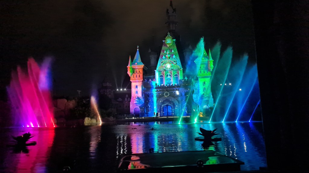 The Castle Show at 7pm was amazing. They projected stuff onto the castle, and there were fountains and fire.