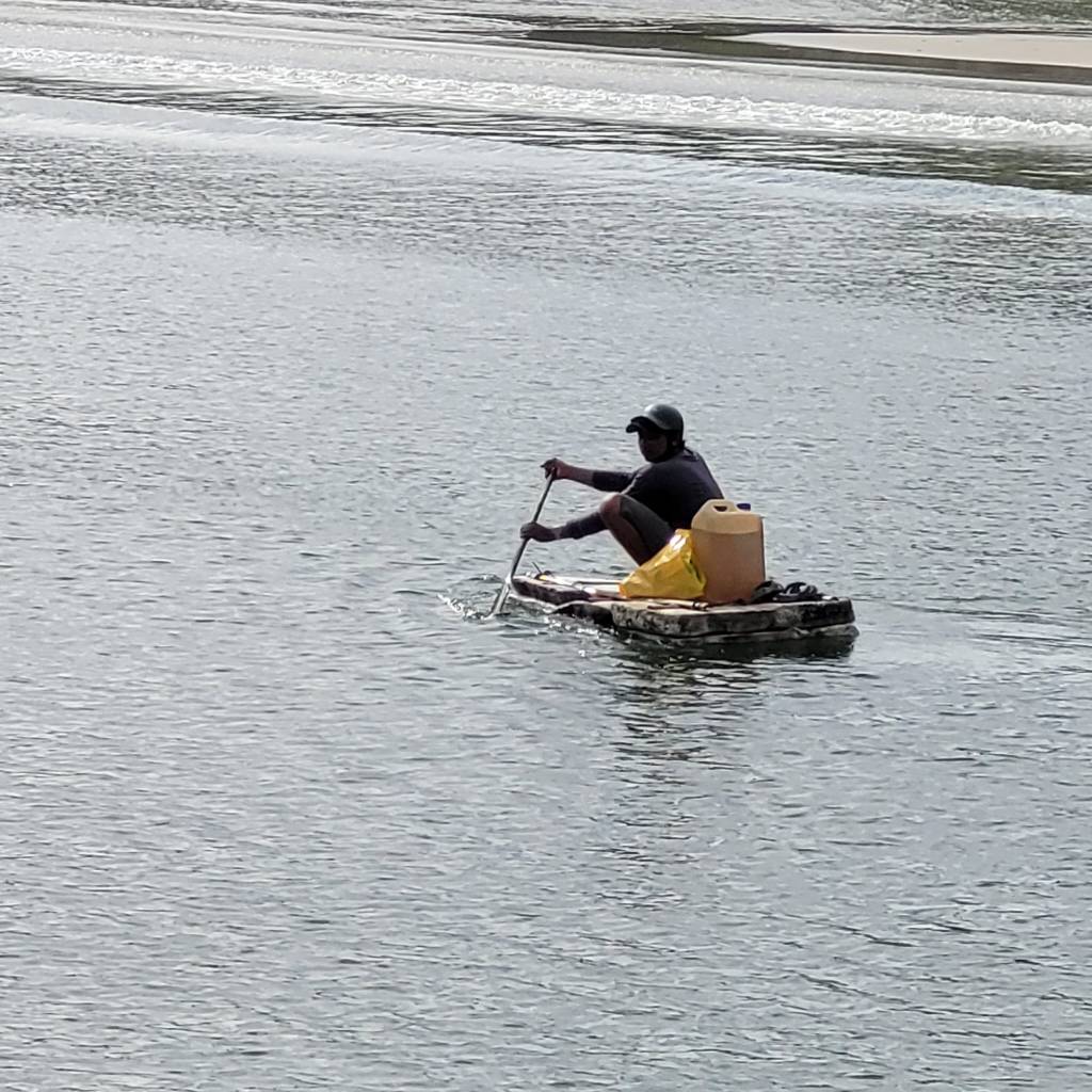 A few steps behind the rest of us, Shaun snapped a few photos as we made our way down the pier, including this resourceful guy using a mattress as a raft!