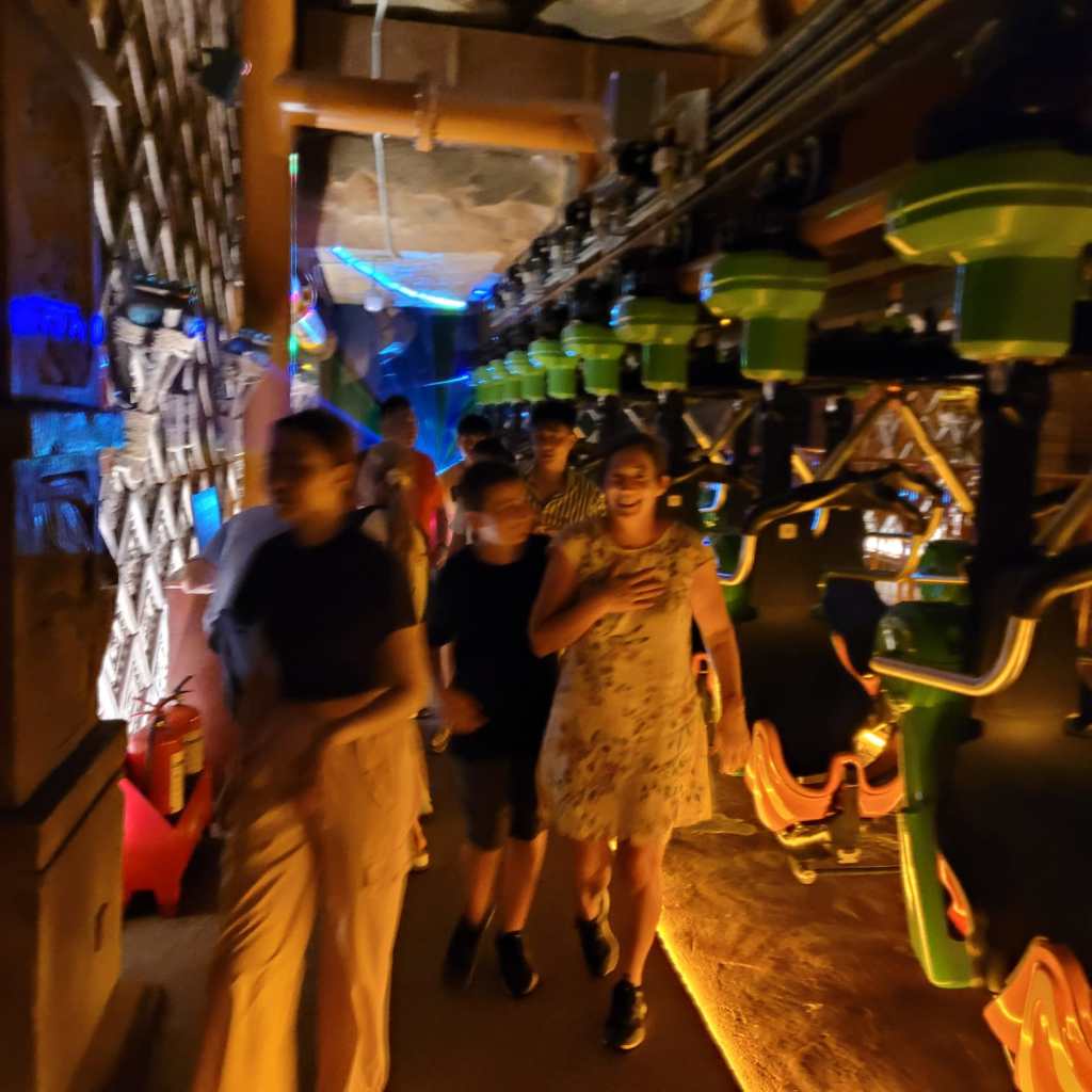 The Dragon’s Spell was a 3D shooter ride. You sat in a cart and went along two different areas when you shot monsters. You got points as you went along, and we had to shoot the monsters. Dad got the highest score by a mile, and Anna came last.