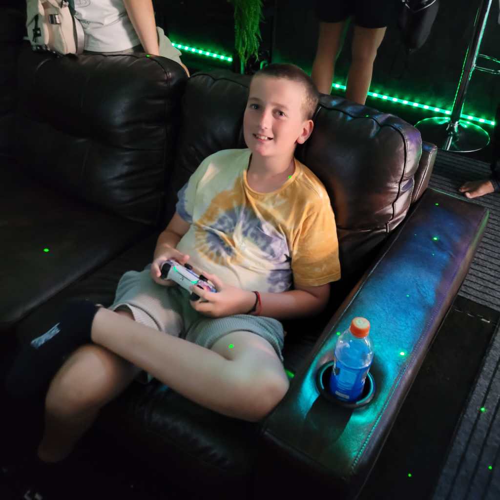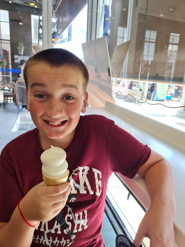 Their last stop of the day was the gaming lounge where they played some of the Playstation games on offer, and Ben and Lucas tried out the VR. The air-conditioned space was a welcome relief after their hot day out.