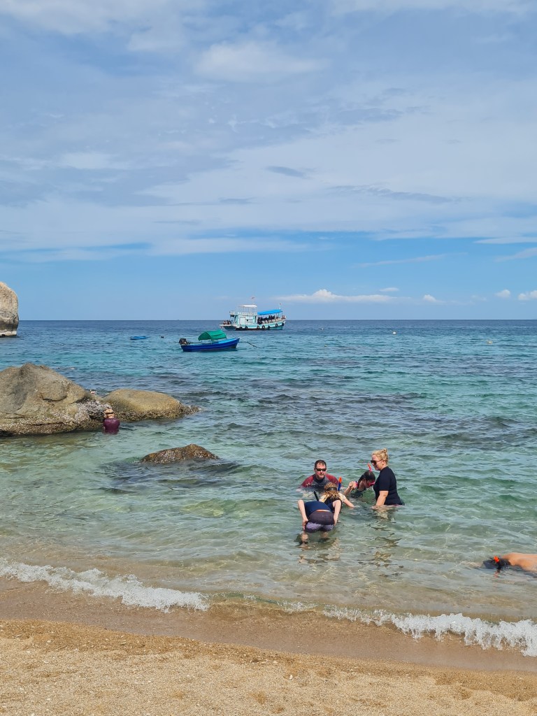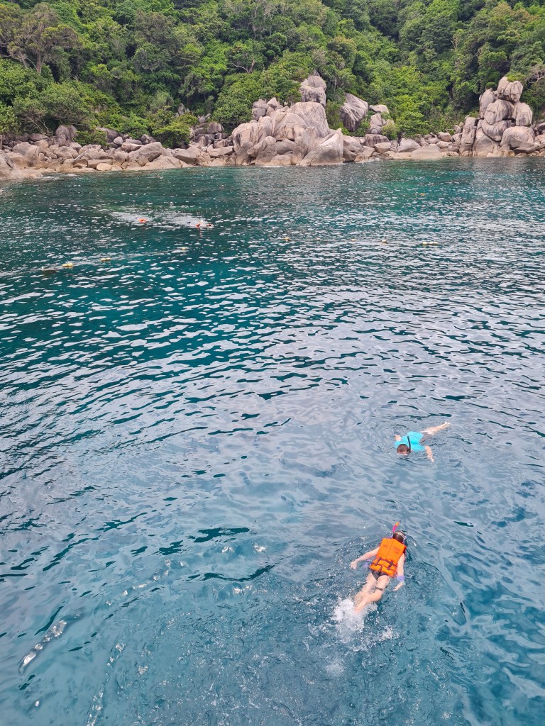 There was a bit of a delay leaving, so by the time we arrived at Koh Nangyuam, it was about 11.30am. We were meeting back at the boat at 1pm so we decided to skip the congested walk up to the lookout point (a lot of boats had arrived at once) and get straight into the snorkelling, since all the kids were itching to get started.