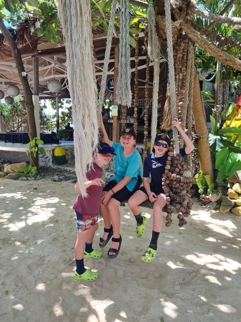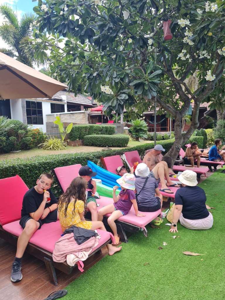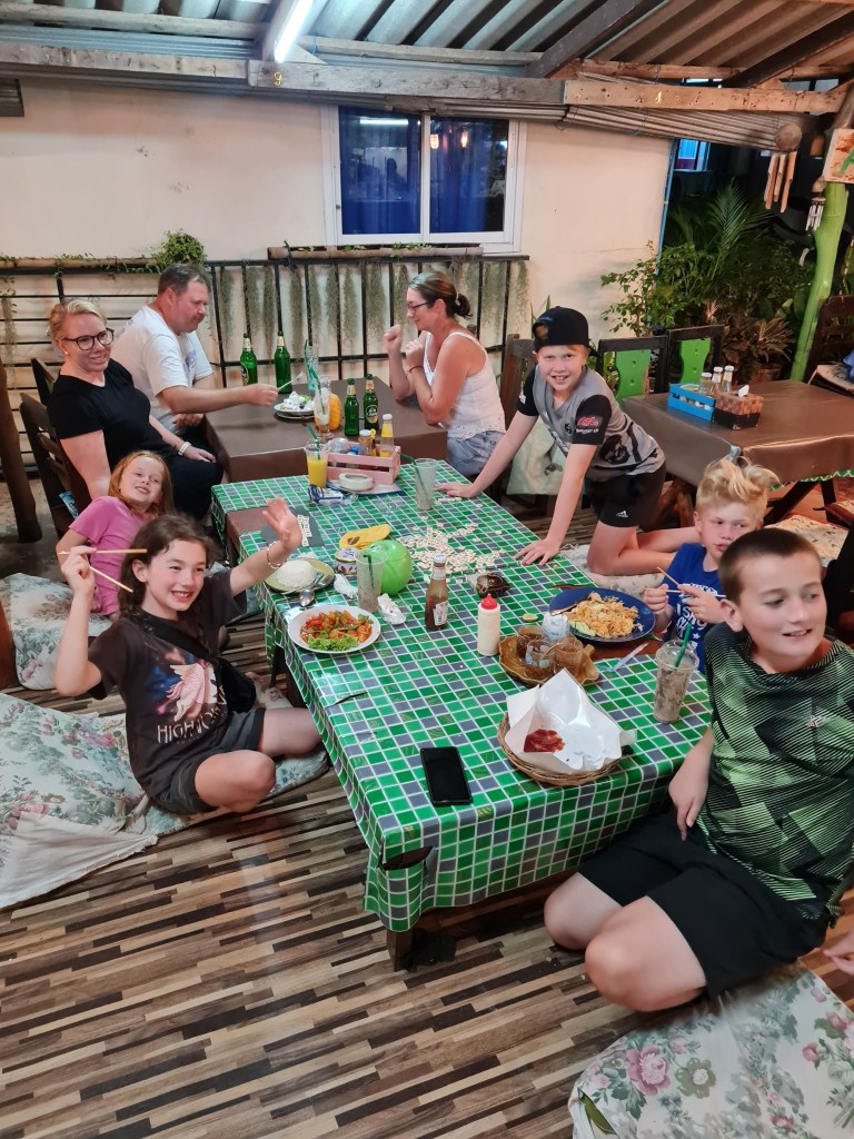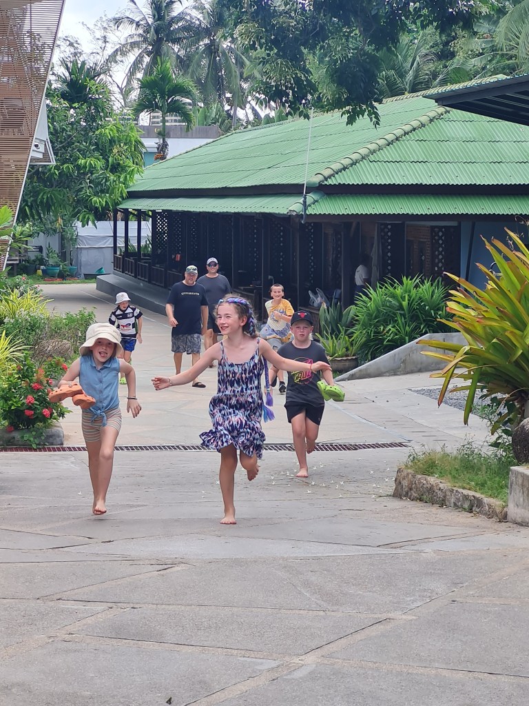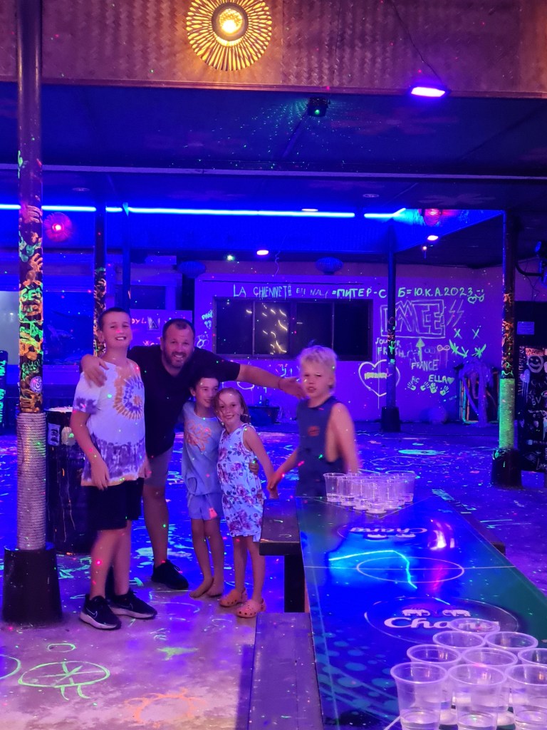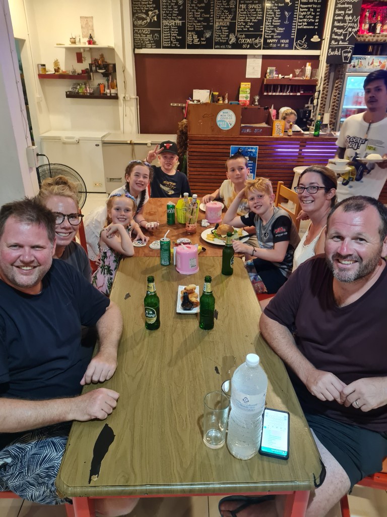 The next day, we checked out and then walked 100 metres down the road to the Sairee Hut Resort, where we were meeting our Kiwi mates later in the day. They arrived at about 3pm and it was a joyful reunion. We usually holiday once a year with Nick, Sarah, Lucas, Ben and Sophie in NZ, so our kids were stoked to have playmates who they know well for the next couple of weeks.
