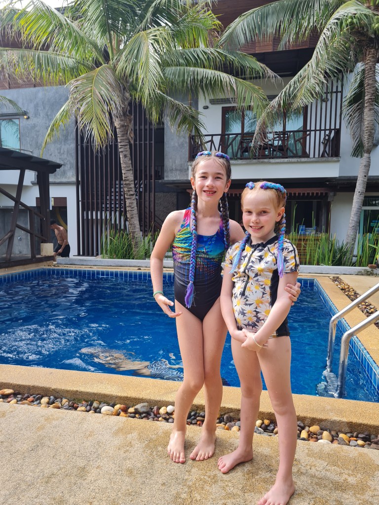 After our last bit of pooltime, we got organised and went out for dinner to the Lucky Crab Restaurant. We adults shared a delicious assortment of Thai dishes, while the kids each ordered their own choice of meal. The spaghetti bolognaise proved to be a hit with the girls.