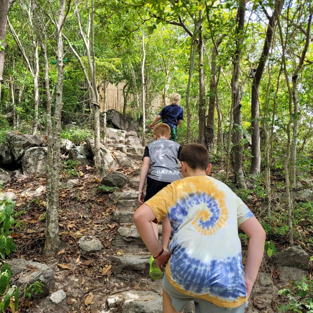 We were only here a short time before continuing on to Mango Bay, where the water was deep enough for people to jump off and use the slide. Lucas, Ben and Sophie had a great time leaping off the jumping platform. Shaun and Nick also got in amongst the action.