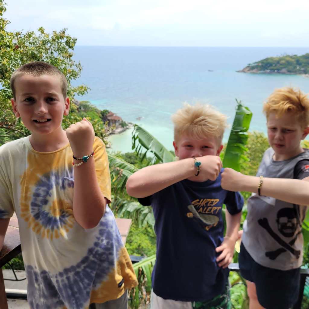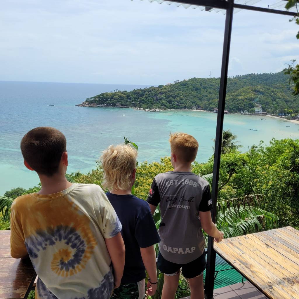 Fortunately for us, because we were the final destination, we were invited to board the ferry and stow our luggage first, which meant a relaxed boarding and guaranteed, air-conditioned seats up the front of the boat. Our friends told us that when they boarded the same fast ferry at Koh Samui with their kids a few days later, they were literally shoved out of the way by other travellers rushing for the empty seats. Unfortunately, we got to witness this for ourselves on the return journey to Koh Phangan.
