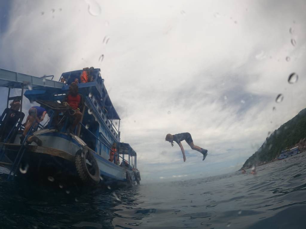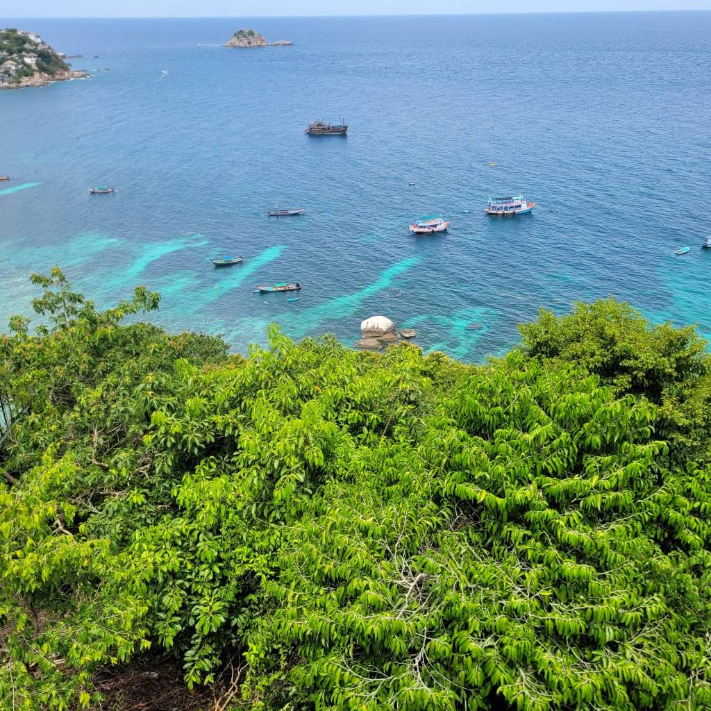 I did some reading up about the coral, and it turns out that Koh Tao has experienced several mass bleaching events in the past 20 years. In addition to this, the coverage of coconut plantations on the island has increased, leading to soil erosion, which impacts on the water clarity and subsequently on coral growth. It’s such a shame that the confluence of climate change, mass tourism and capitalism all conspire to threaten the beauty of places like Koh Tao. While the majority of snorkelling trip providers have banned fins in order to protect the regenerating coral, there were still plenty of people out there using them. You’ve just got to hope they know what they’re doing.