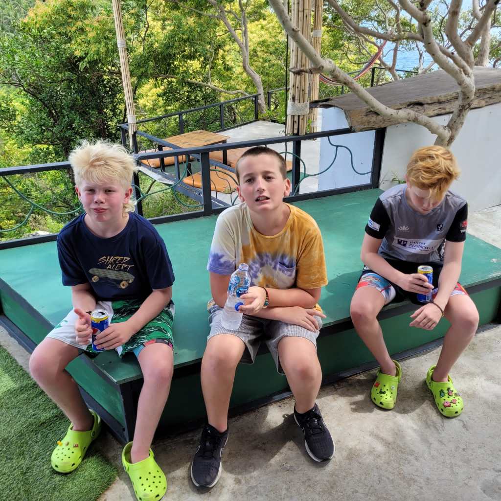 The kids invented lots of games to play in the 3m deep dive training pool, which kept them entertained for hours while we were able to lounge by the poolside reading our books. The only interruption to the tranquility was Leo noticing the images of stylised genitalia on the bathroom doors across from the pool. He laughed and then yelled out across about 15 people……”DAD!….THERE’S A PENIS ON THIS DOOR!!” Shaun didn’t shrink from parental responsibility and front footed the announcement with a thumbs up, yelling back “Good stuff….thanks for that, Leo!” as muted amusement could be heard from the surrounding sunbathers.