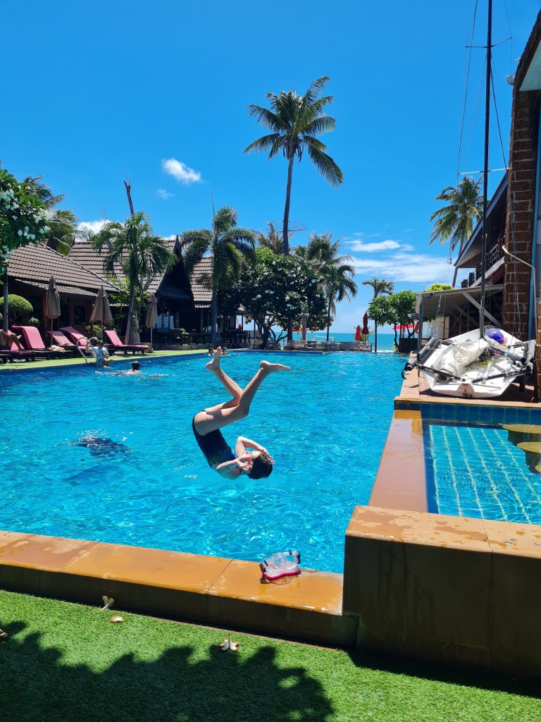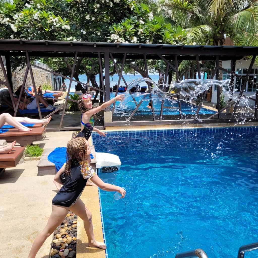 We had great swimming on both islands. At Koh Tao, we had a really deep pool and a shallow pool. And at Koh Phangan, we had a really long pool.