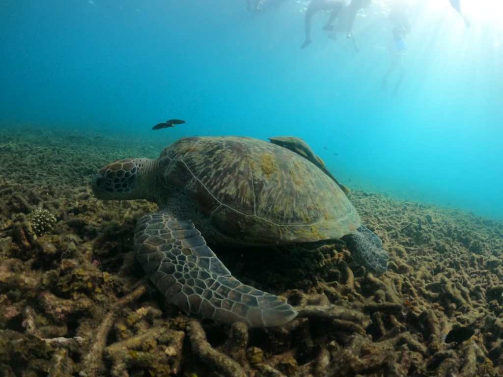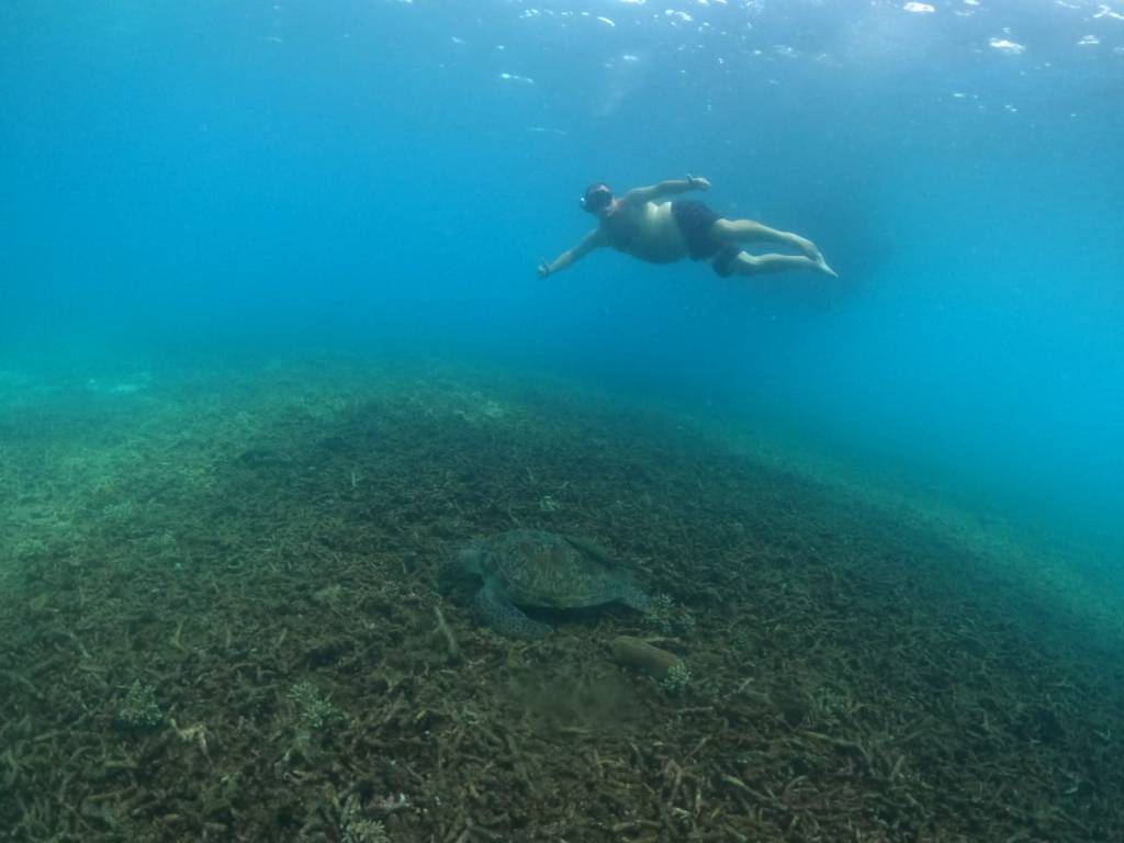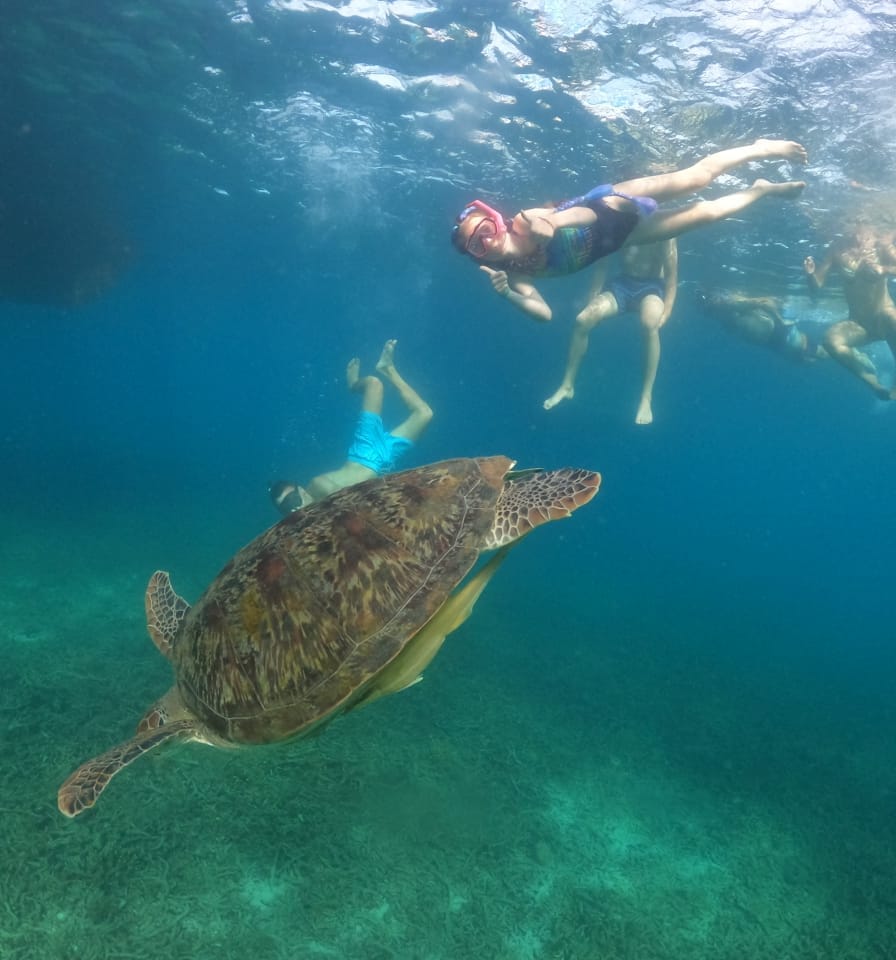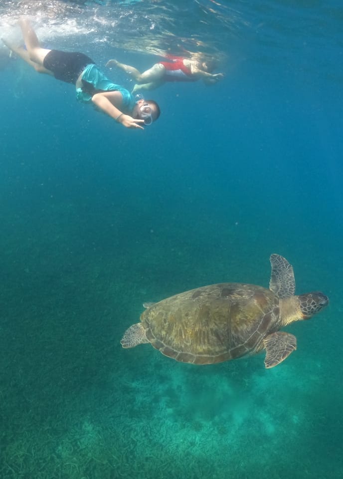 On the snorkelling trip, we went to a few areas where we saw tons of fish, and at the last spot, we saw a huge turtle that we had a photo with. The only reason this is lower is because when I went on the slide, I flipped over, bellyflopped and got winded.