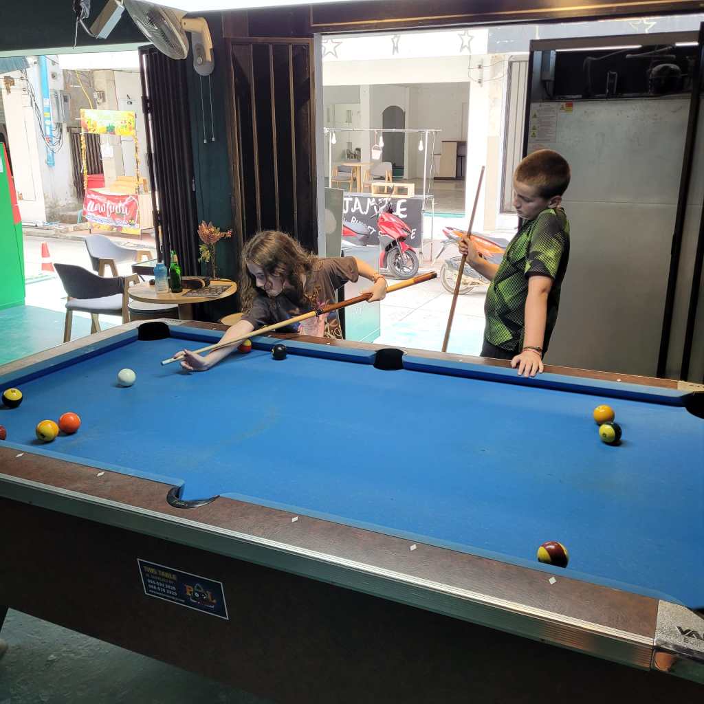 On Koh Phangan we played a lot of pool, and it was super fun. I’ve been practicing and I’m getting really good at long range shots as well.