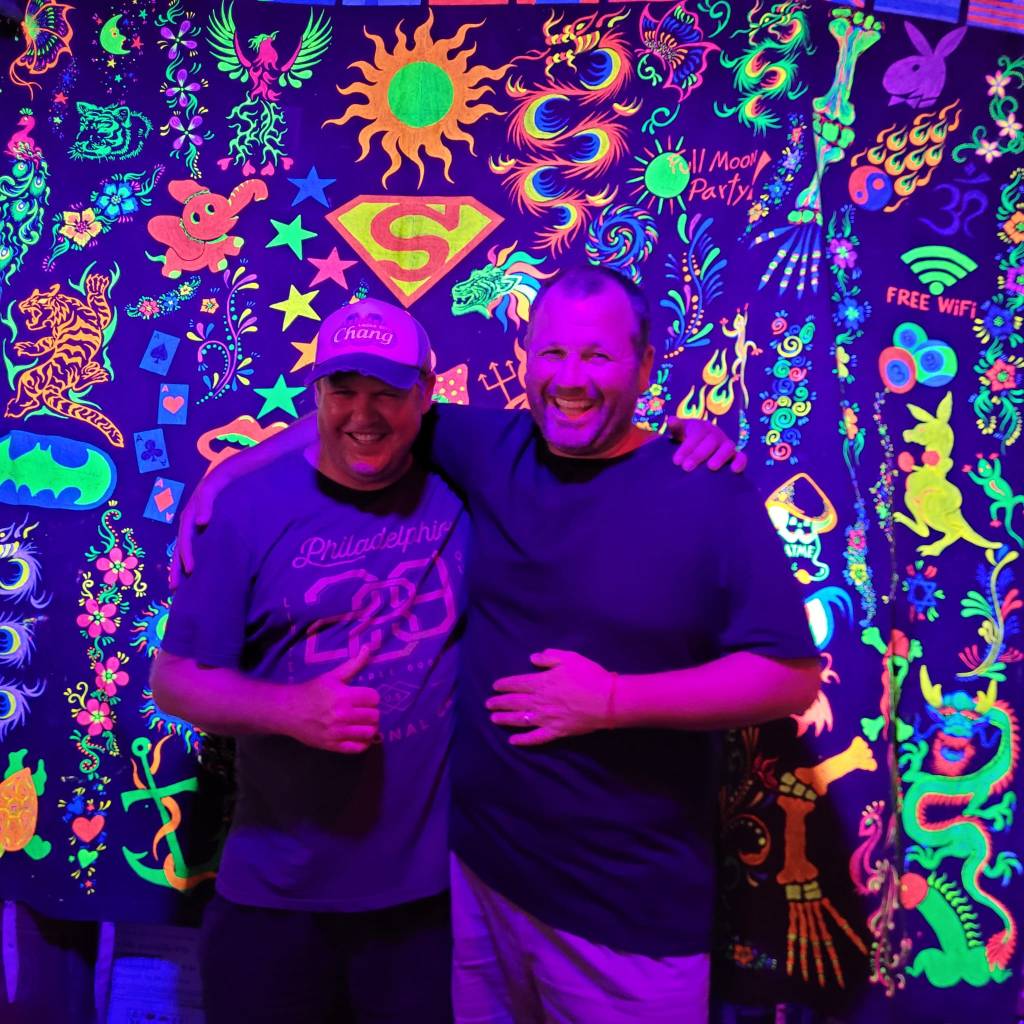 The following day was Sarah’s birthday and our last day on Koh Phangan. For a birthday treat, Sarah and I walked across to the Vanee Sands Resort, where we each got an hour long relaxing massage. Despite our wishes to not have any of the more vigorous Thai massage action, both of us ended up getting bent forwards and sideways like rag dolls by our small but deceivingly strong masseuses towards the end of the experience. This was followed up with several vigorous backslaps, just to wake us up at the end of the massage!