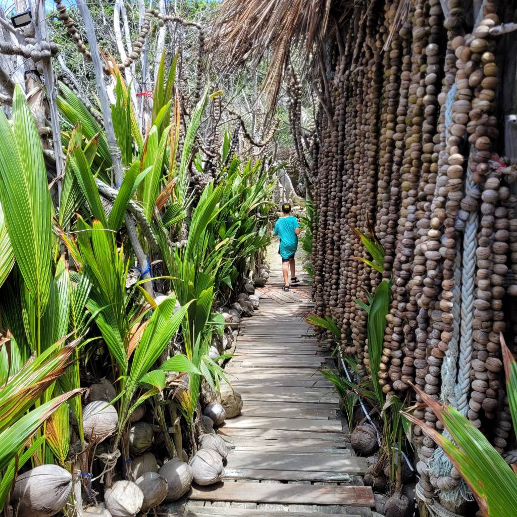 It was such a cool place, decorated with drapings of amazing rope, shell, and seed pod artistry, as well as swings and hammocks.